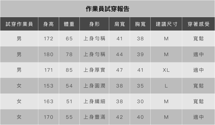 ※試穿結果會因每人感受、身材比例以及穿著習慣而有所不同,試穿報告僅供參考。